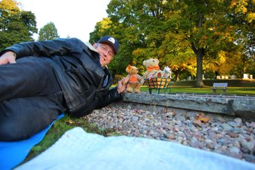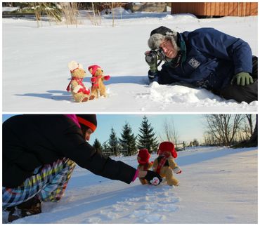 Both are Elementary School Teachers in Western New York. When not teaching, Stryker does the photography and co-writing for the Teddy Bear Books, and Marilyn handles staging, wardrobe, bearaphernalia, and also co-writes the books.Together they have such fun! They are always looking for new locations for the bears to go adventuring, such as their new favorite place at http://artisanworks.net/