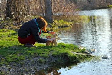 Yes, Bennington really was next to the baby foxes as they emerged from their den. They watched each other closely and became best friends!